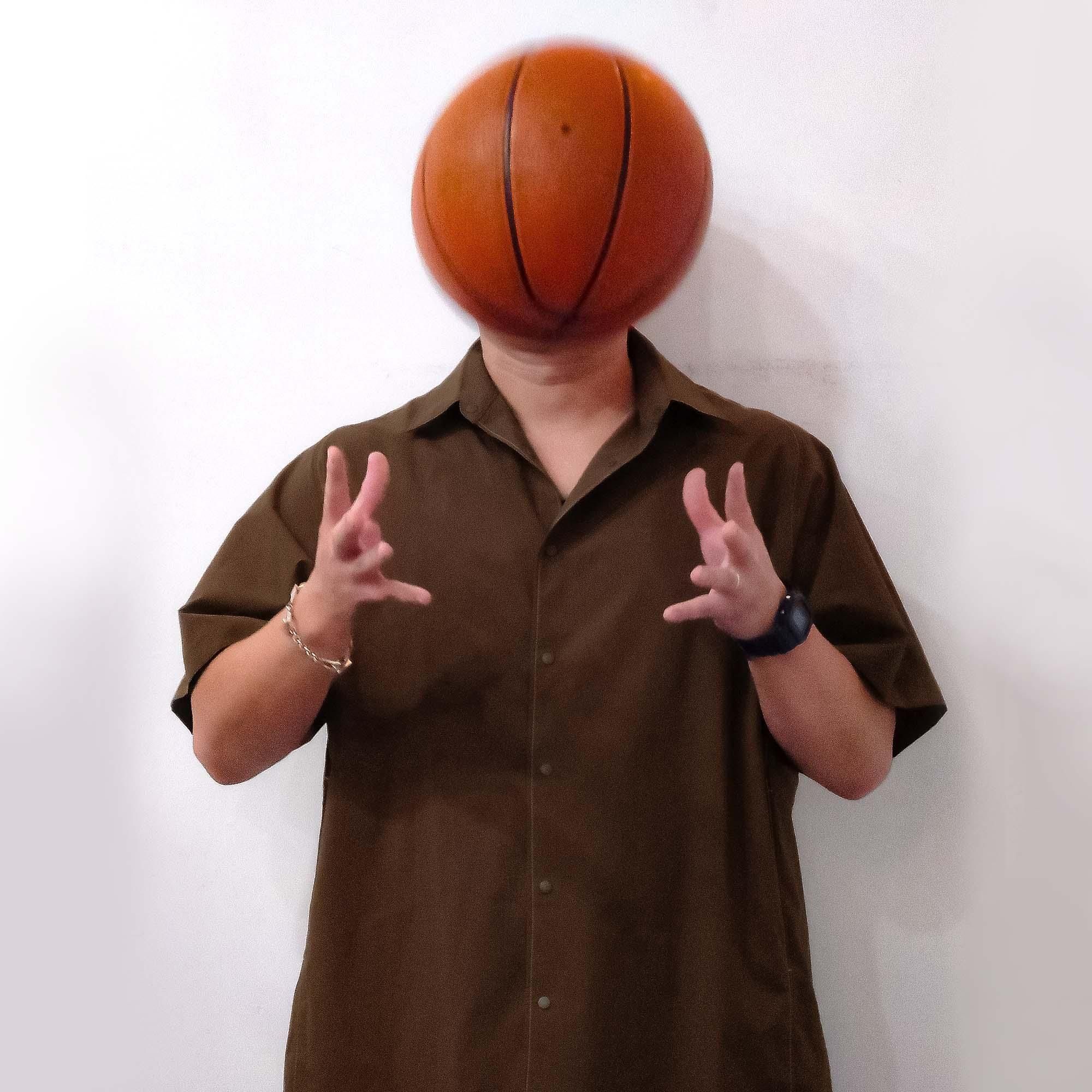 このデザインはバスケットボールでシュートを打つ